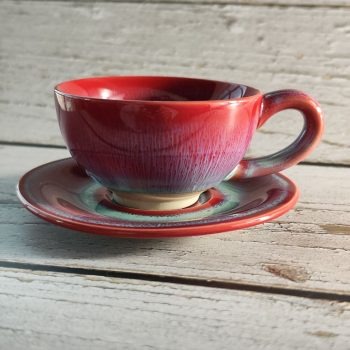 Artisan Ceramic Mug with Wooden Handle – 380ml (Turquoise)